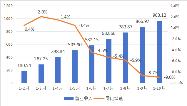 到10月结束时,营收升至963.12亿元,同比下降9.0%,降幅为迄今为止年内最大。